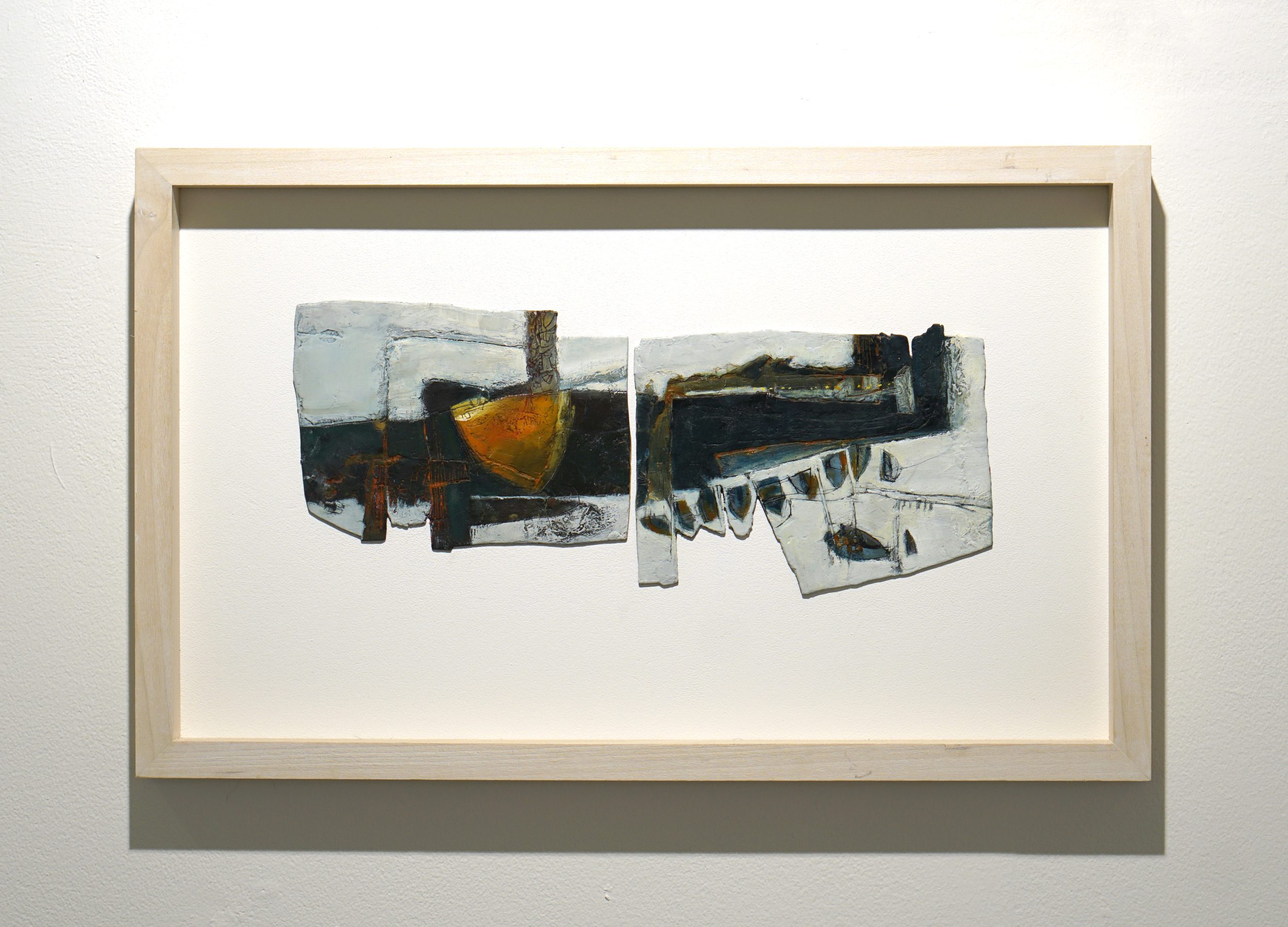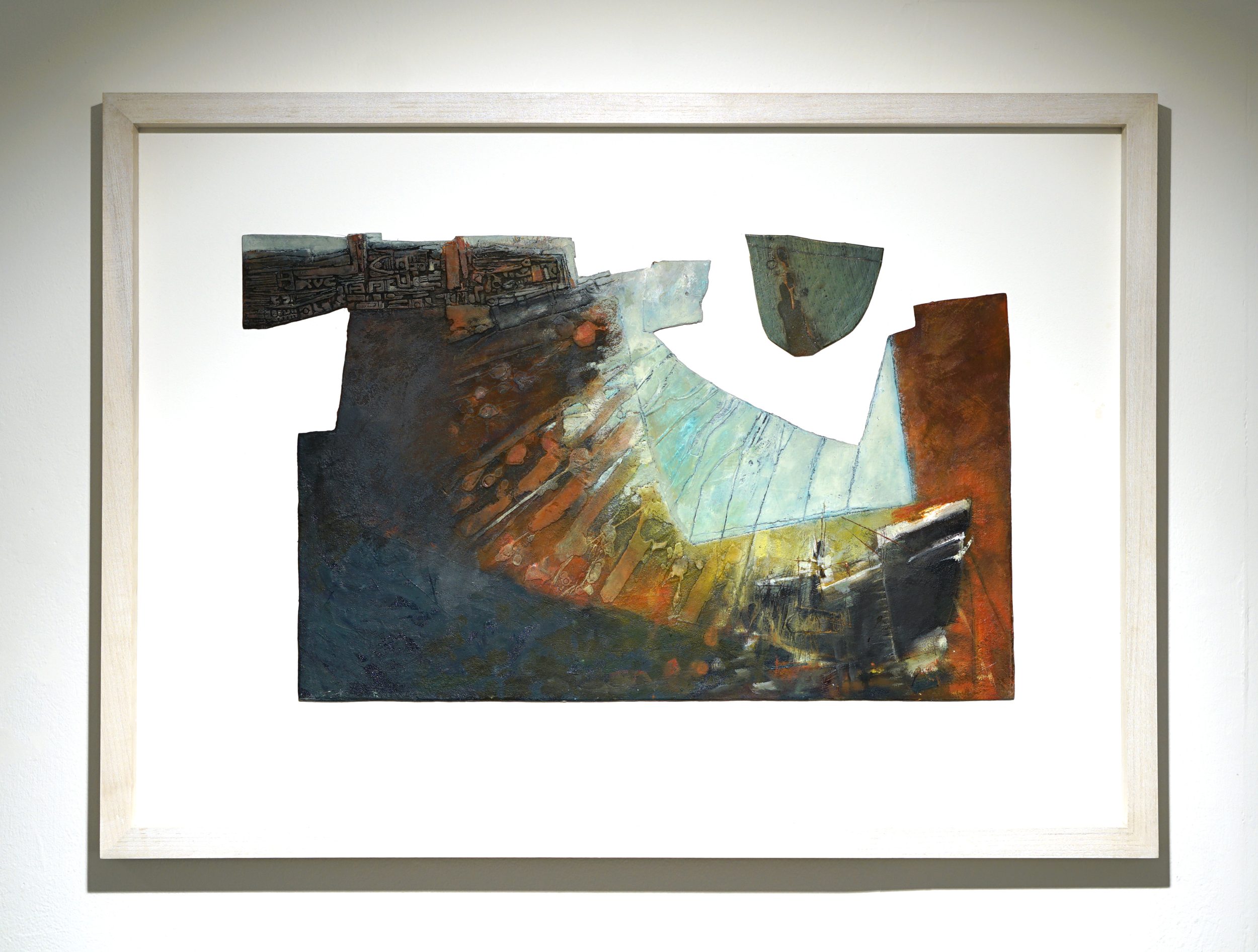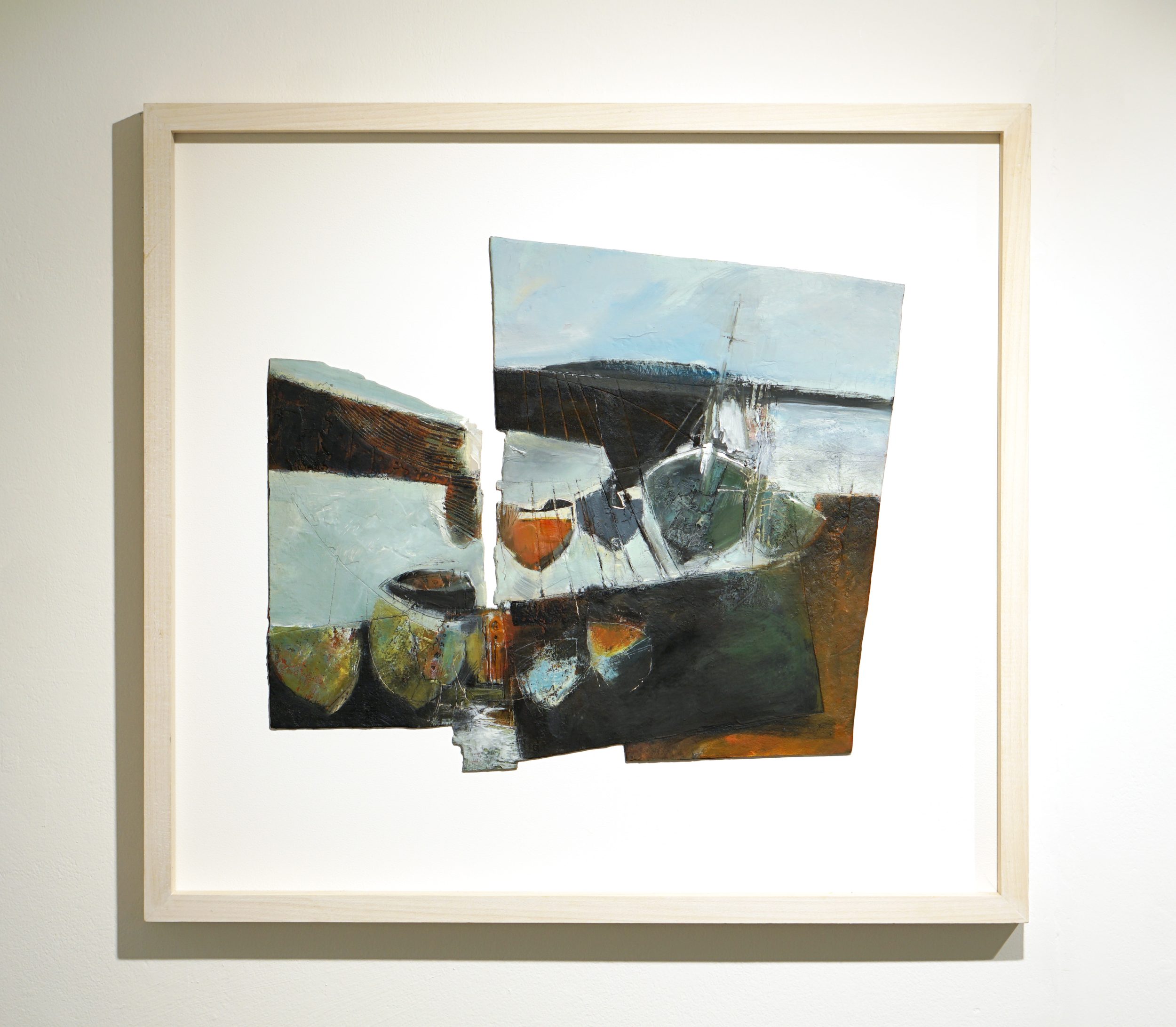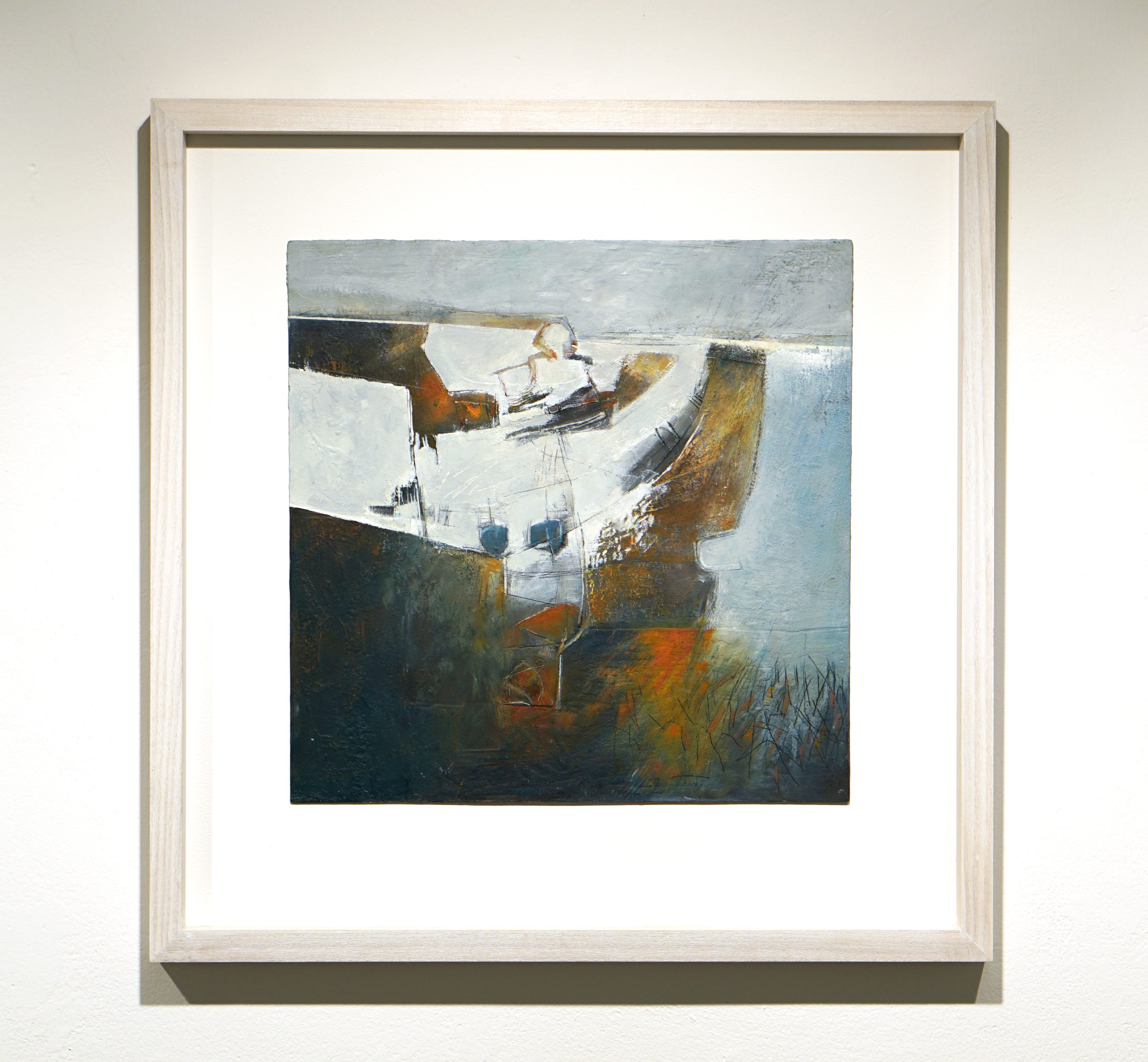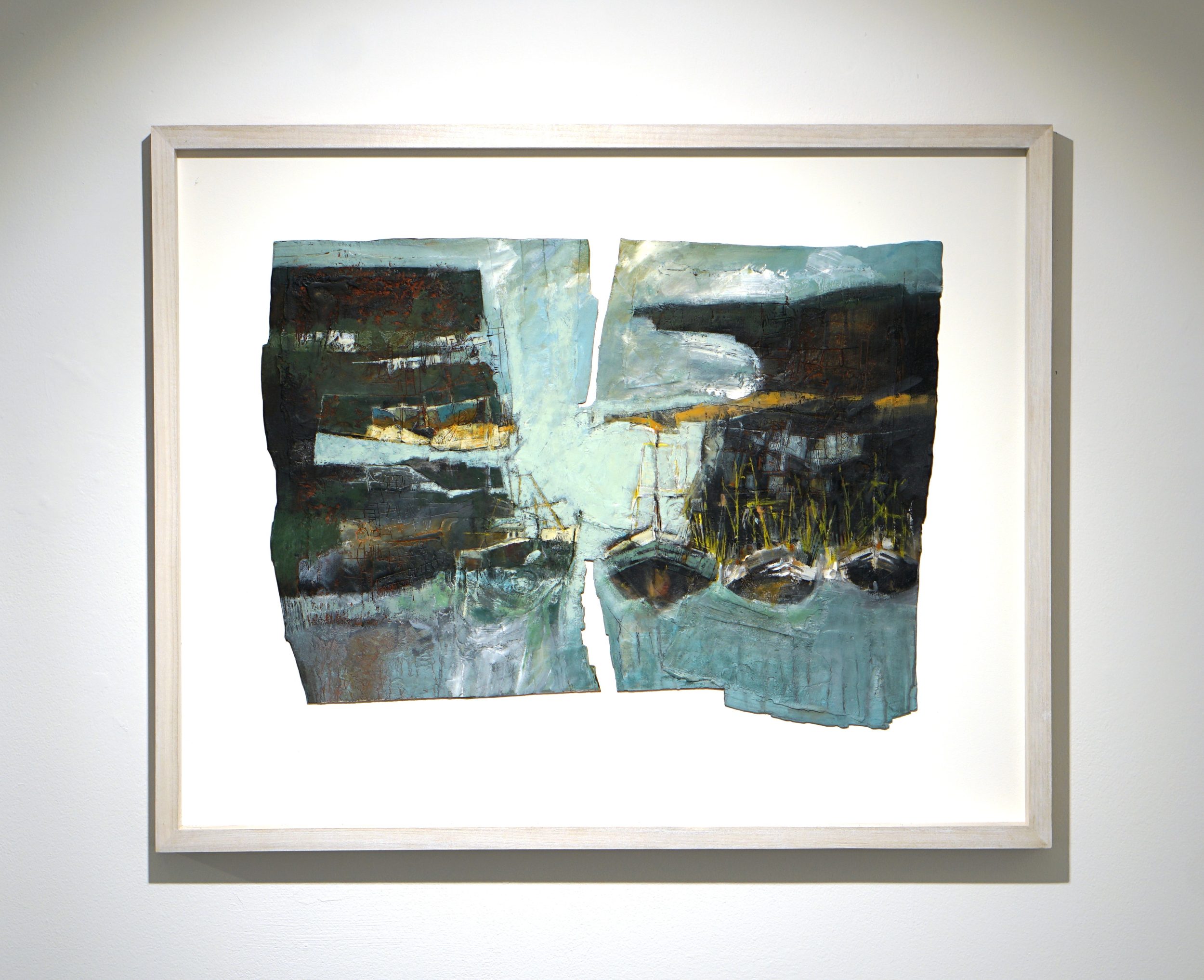 Peter and Judy relocated to West Penwith in 2008. They share similar responses to materials, landscape and the art process, and so collaboration enables them to collectively express their individual responses in a way which brings new meaning to each. Wray’s interest in the personal significance of sheltered spaces such as harbours, quarries and inlets, and Collins’ focus on the edges of things, where differences merge – sea/land, man/nature, etc – and the extremes of weather, make a fertile combination. While initial inspiration and content may vary for each work, certain elements link their individual contributions – an interest in textural qualities, sensitive use of colour, experimentation with the medium and a mutual respect for the subject matter.